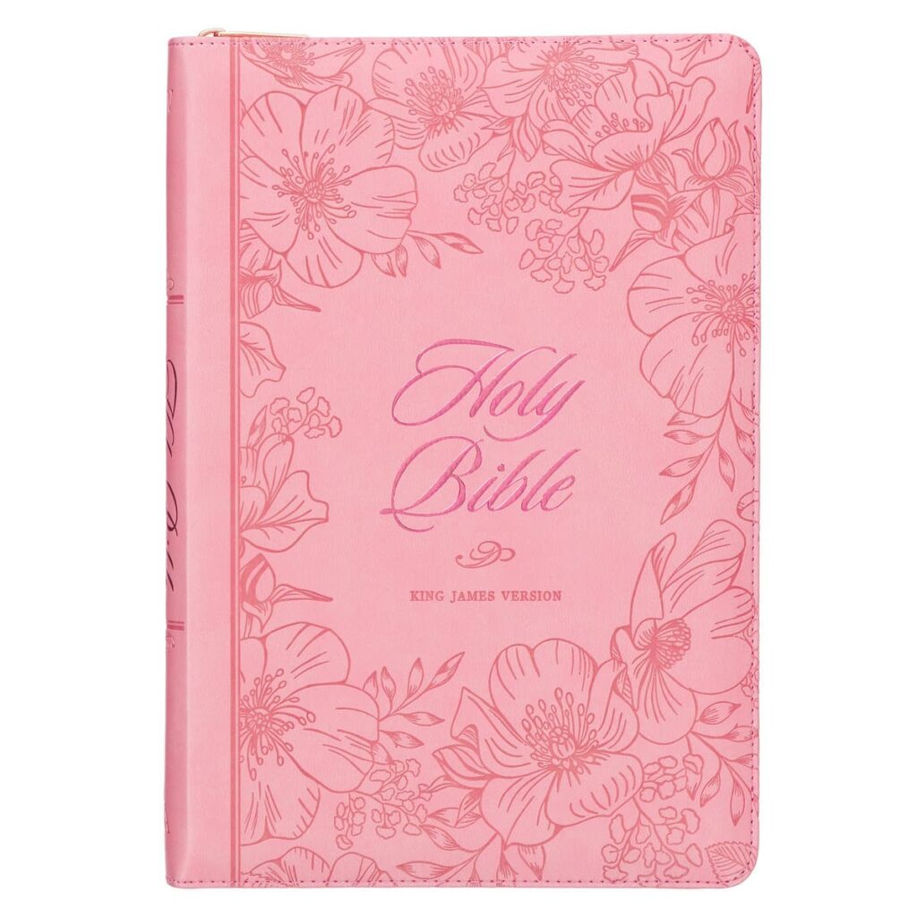 KJV Large Print Thinline Bible-Sunrise Pink Faux Leather Indexed w/Zipper