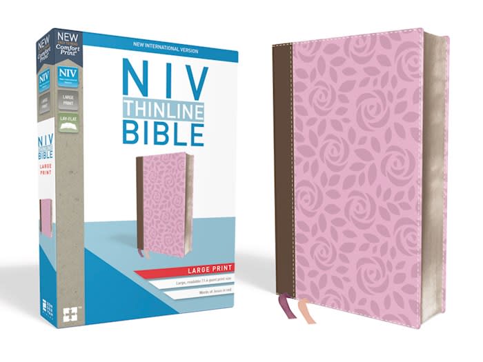NIV Thinline Bible/Large Print (Comfort Print)-Pink Leathersoft
