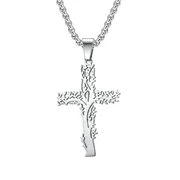 Tree Cross with 24 in Stainless Steel Chain – Silver