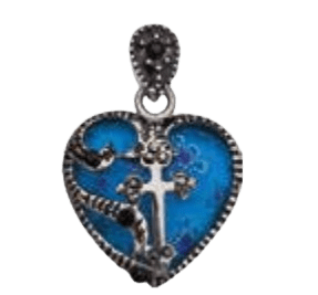 Necklace – Stainless Steel Heart Cross (Murano Glass/Marcasites) (18″ Chain)