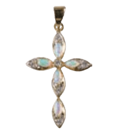 Necklace – Gold-plated Cross w/Genuine Opals & Cubic Zirconia (18″)