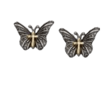 Earrings – Rhodium Plated Cross Butterflies (w/Cubic Zirconia)
