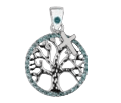 Necklace – God’s Family/Tree of Life Sterling Silver w/Blue Cubic Zirconia (18″ Chain)