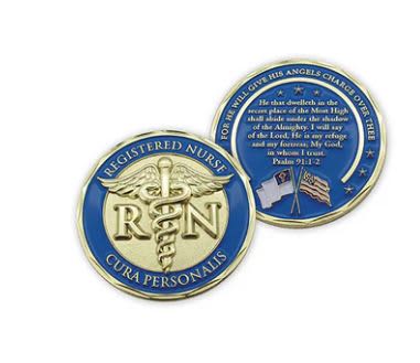 Nurse Gold Plated Challenge Coin With Psalm 91 and Cura Personalis